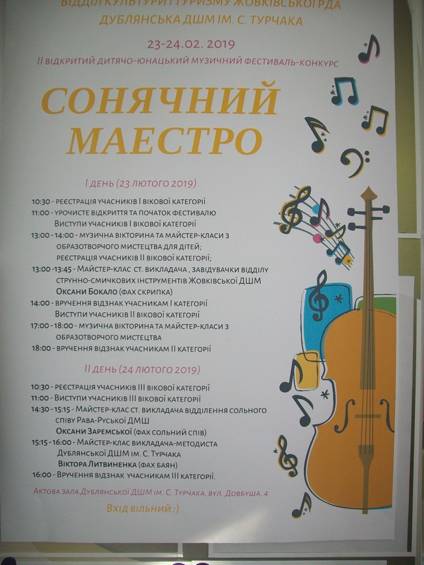 23-24 лютого 2019 р.в Дублянській ДШМ відбувся ІІ відкритий дитячо-юнацький музичний фестиваль-конкурс Сонячний маестро". На конкурс приїхали учні Із Жовківської ДШМ, [...]