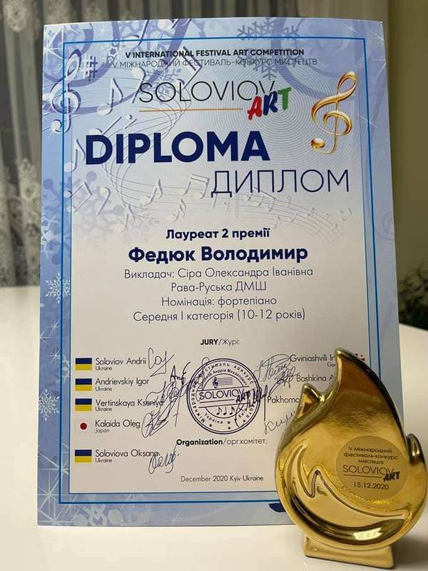 Вітаємо лауреатів 2 премії Міжнародного конкурсу SOLOVIOVART - Володимира та Юстини Федюків! Клас старшого викладача вищої категорії Олександри Сірої. Бажаємо успіхів і [...]