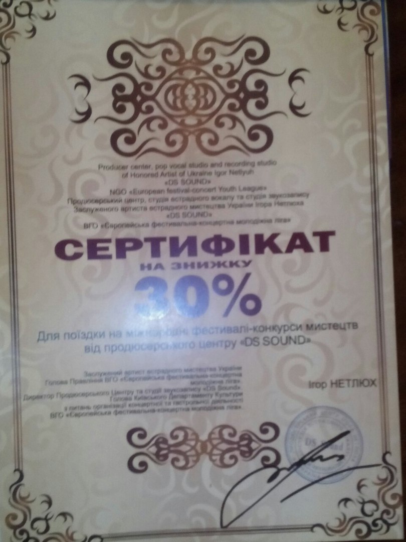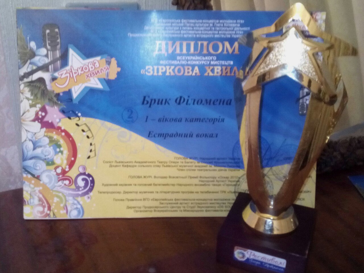 17 грудня 2016 р. в Львівському Палаці Культури ім. Г. Хоткевича відбувся Всеукраїнський фестиваль-конкурс "Зіркова хвиля" на якому побували і ми. В фестивалі взяли участь понад 3000 дітей з батьками та викладачами які допомогли підготуватись до концерту. Учні нашої школи зайняли такі місця: Віхоть Юліана - І премія , Ворожбит Соломія - І премія (викладач Прибула Г.В.), Войтович Анна-Марія - ІІІ премія (викладач Кунтій О.Ю.), Брик Філомена - ІІ премія, Хор Ірина - І премія в номінації народний вокал (викладач Заремська О.М.), Галас Артур - ІІ премія, Юзв'як Віктор - ІІ премія, Лень Соломія - ІІ премія, Діана Горбяк - І премія (викладач Венедиктова В.Ю.). Катерина Заремська виступила як гість в дуеті з директором фестивалю Ігорем Нетлюхом і виконували його авторську пісню "Новий Рік". Викладачі були нагороджені за якісну підготовку. На наступний день Катерина разом з відомими українськими зірками, серед яких львівський співак Назар Савко, взяла участь у благодійному концерті до деня Св. Миколая для дітей-сиріт.