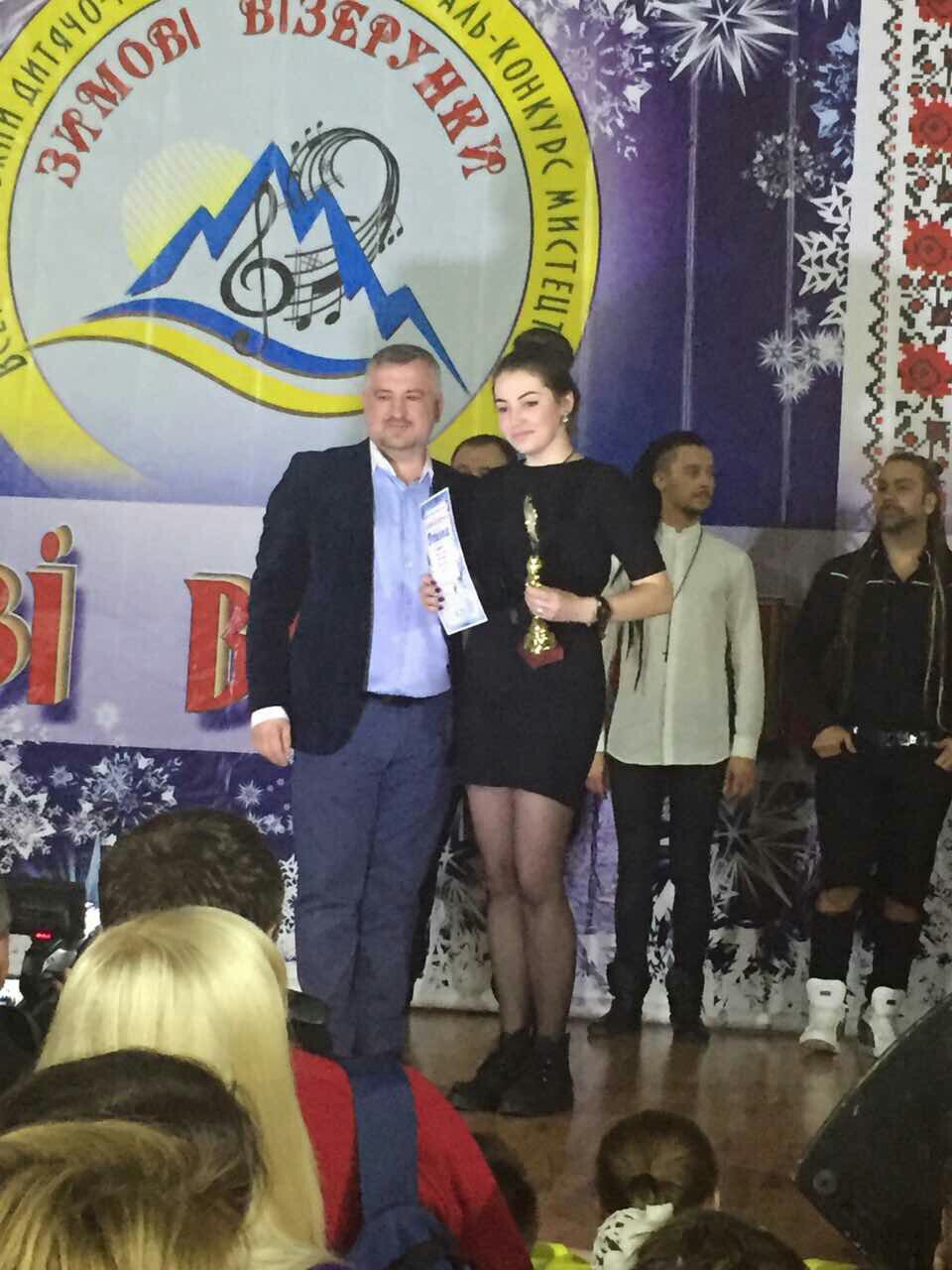 11 лютого випускниця нашої школи по класу вокалу Вікторія Вольська представляла нас на Всеукраїнському фестивалі "Зимові візерунки"(Сонячна долина - Чернівці). За високий рівень виконання була нагороджена І премією - естрадний вокал(викл. Заремська О. М.). Дуже приємно, що назва нашої школи звучить у різних куточках України. Вітаємо її!