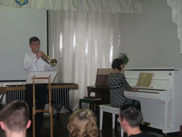 "Скерцино" - у виконанні учня 6 класу Домашовця Самуїла(труба), клас викладача Меляна О. М., концертмейстер Боровець М. І.;
