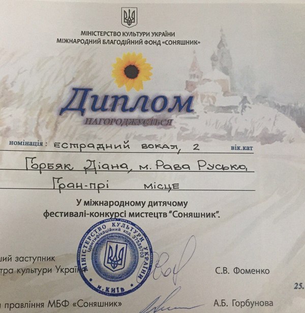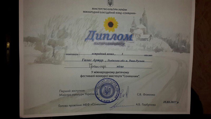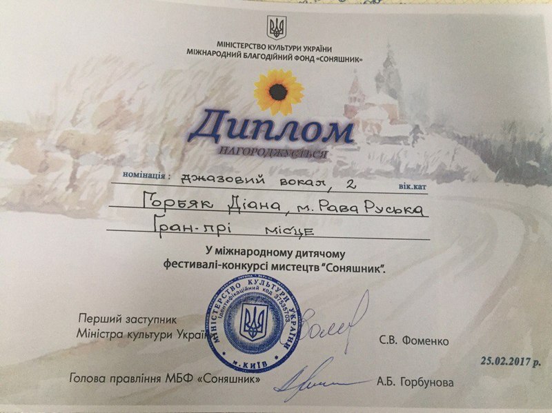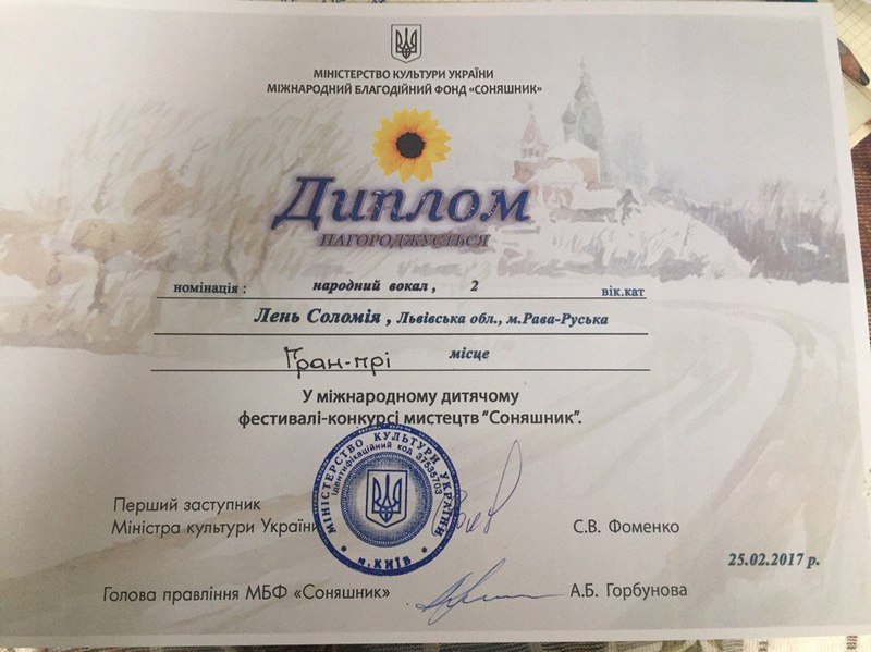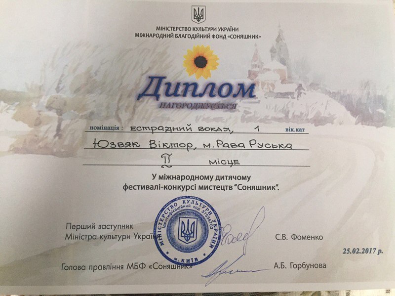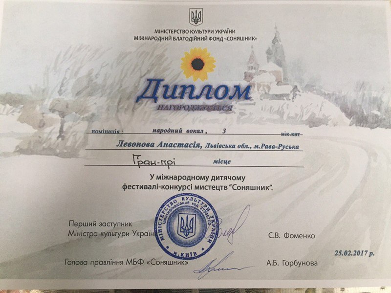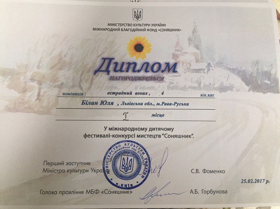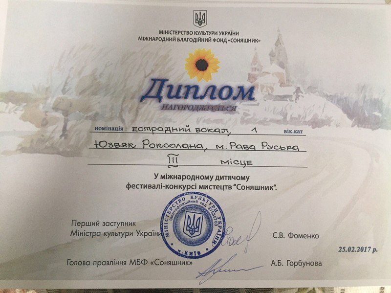 25 лютого в м. Київ на Мiжнародному фестивалi-конкурсi мистецтв "Соняшник", нашу школу представляли: