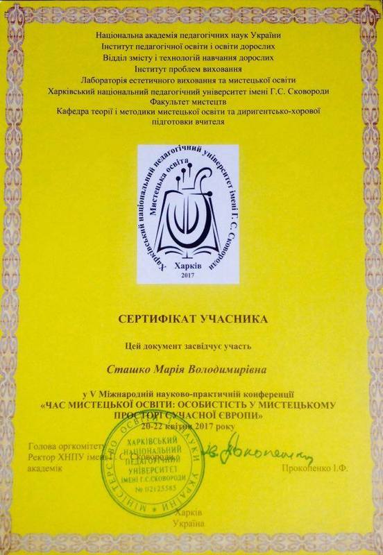 20-22 квітня 2017 року на базі Харківського національного педагогічного університету імені Г. С. Сковороди відбулася V Міжнародна науково-практична конференція "Час мистецької освіти: особистість у мистецькому просторі сучасної Європи" . У конференції брали участь аспіранти, здобувачі наукового ступеня кандидата наук вищих мистецьких навчальних закладів. Пріоритетні питання, що обговорювались – теоретико-методологічні основи розвитку особистості у мистецькій освіті сучасної Європи, видатні особистості вітчизняної та світової мистецької освіти, становлення та розвиток національної та європейської мистецької освіти,інноваційні тенденції у просторі мистецької освіти Європи, мистецька освіта у диригентсько-хоровому просторі, мистецька освіта у вимірі народно-інструментального виконавства.