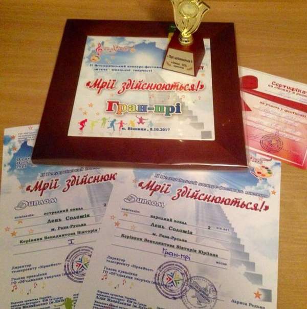 Лень Соломія ГРАН-ПРІ (народний вокал) і 1 премія (поп вокал).