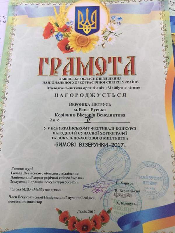 Діана Горбяк , Артур Галас, Анастасія Левонова - 1 премія, Петрусь Вероніка - 2 премія (викл. Венедиктова Вікторія Юріївна )