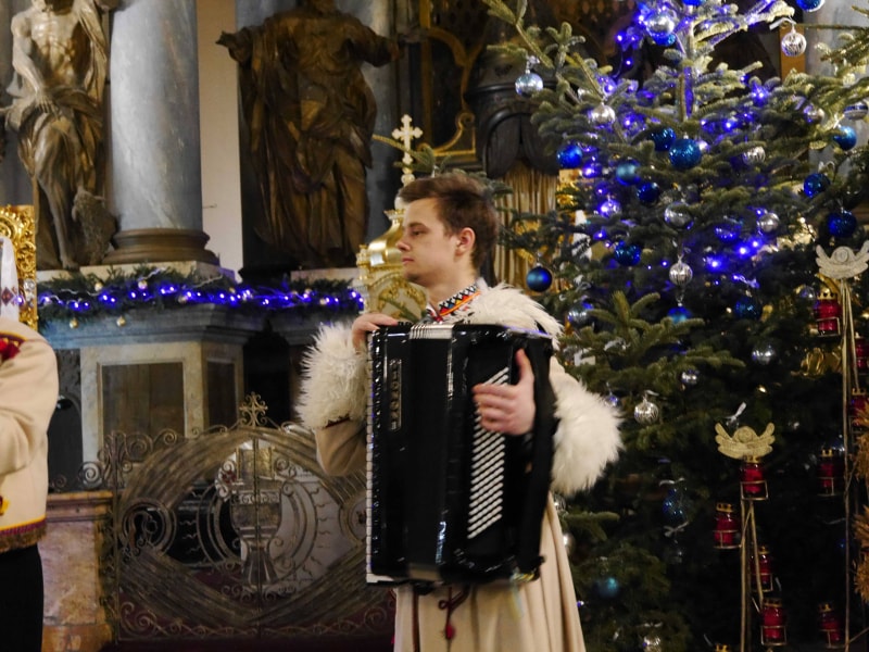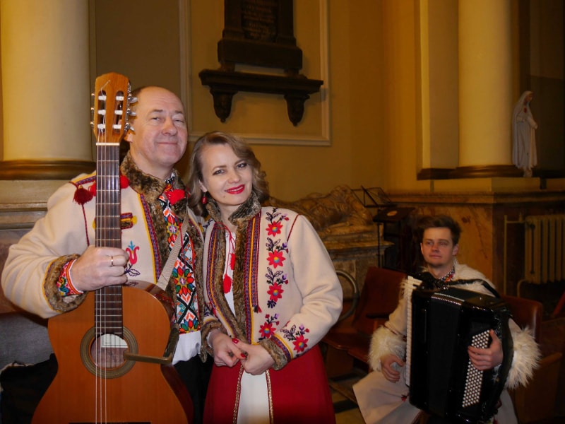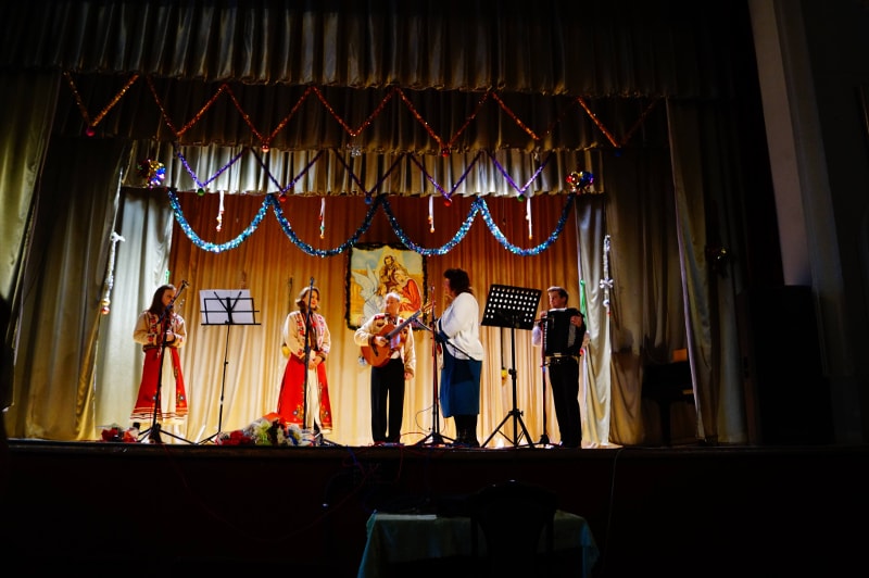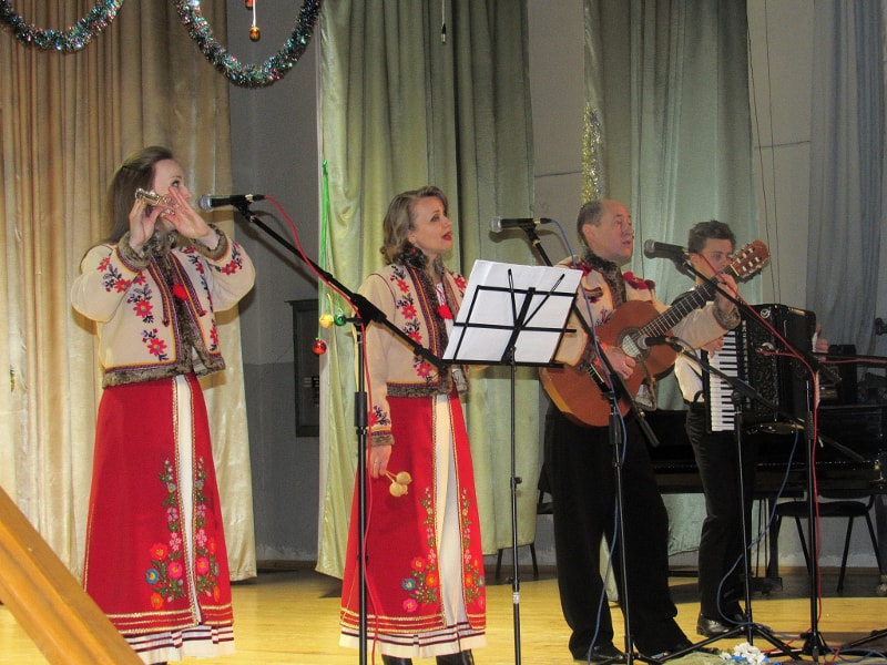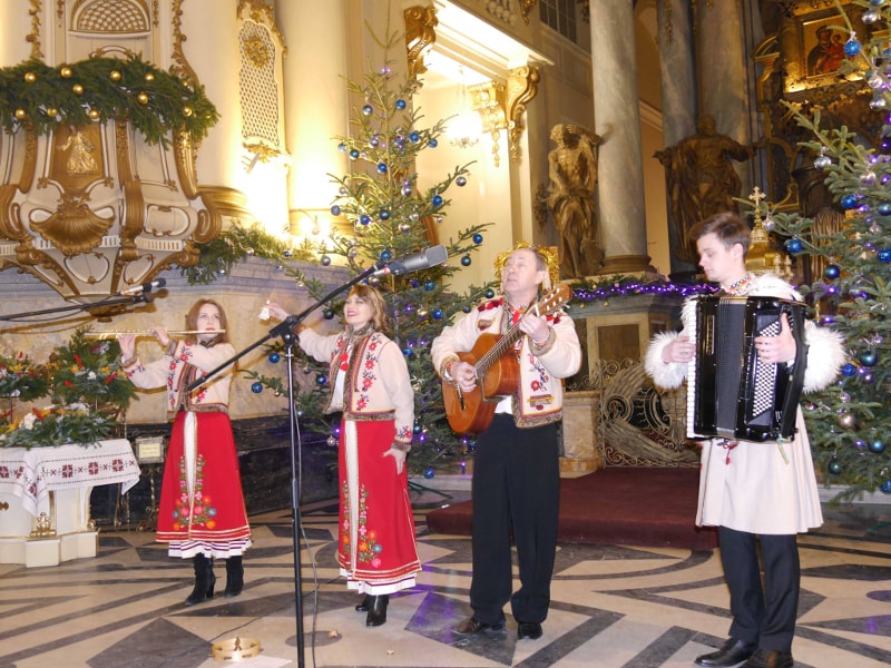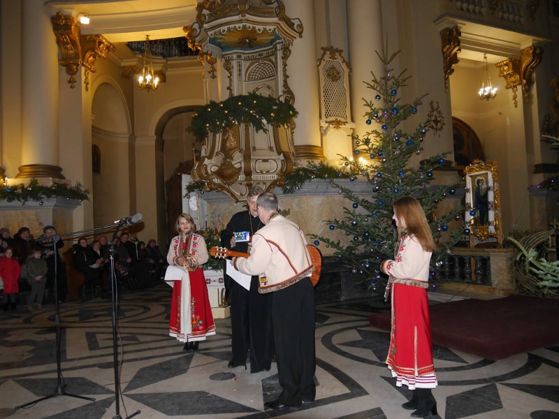Колектив розпочав виступ колядкою “Чути дзвінок”, потім прозвучала “Різдвяна” на сл. і муз. Б.Кожушка, “Нині радість нам усім”, подільська колядка “Дивная новина”, а також закарпатська — “Летів горобець” та гуцульська “Устань, ґаздочку”. Оскільки Йордан — це третє велике свято у різдвяній традиції, прозвучали також щедрівки “Добрий вечір, щедрий вечір”, “Там, за горою” і “Зуронька ясна”.