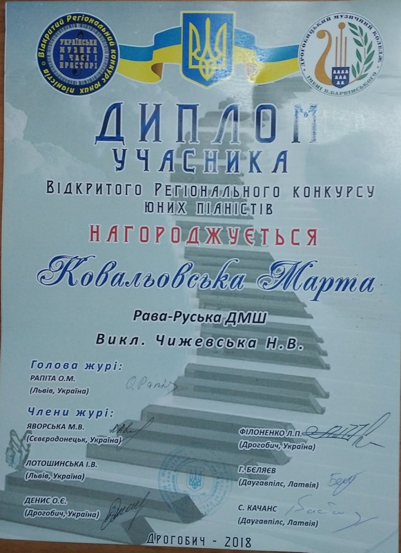 В конкурсі взяли участь 80 учасників з 32 навчальних закладів Львівщини і м. Сєвєродонецька. Раву-Руську ДМШ у II віковій категорії представили двоє учнів: уч. 8 кл. Ковальовська Марта (викл. Чижевська Н.В.) та уч. 9 кл. Домашовець Ангеліна (викл. Павлова Л.К.), які отримали дипломи учасника конкурсу.