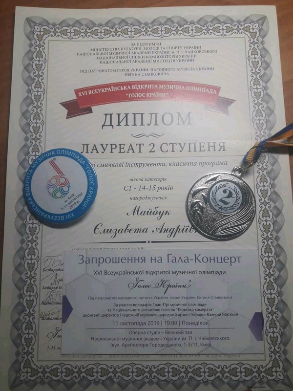 - Майбук Єлизавета - II премія (скрипка)