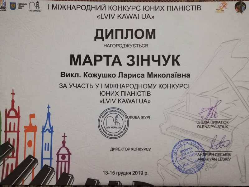 Протягом трьох днів з 13 по 15 грудня 2019 р. у Львові у Великому залі ДШМ №5 відбувався І Міжнародний конкурс юних піаністів Lviv Kawai UA.