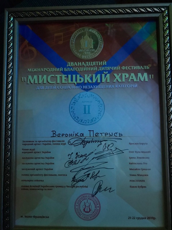 21 грудня в м. Івано Франківськ проходив XII міжнародний благодійний конкурс "Мистецький храм" де учениця нашої школи Петрусь Вероніка здобула - II премію (викладач - Венедіктова В. Ю.)