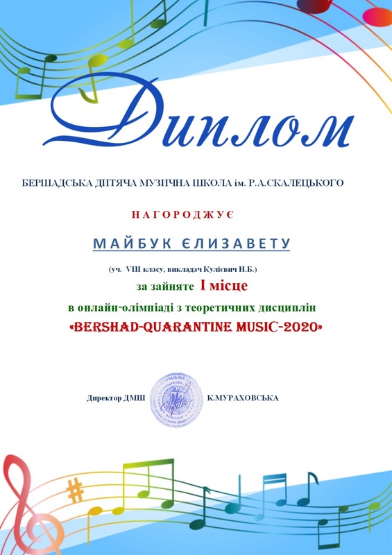 Викладач Кулієвич Н.Б. – Майбук Єлизавета, 8кл. – І місце,