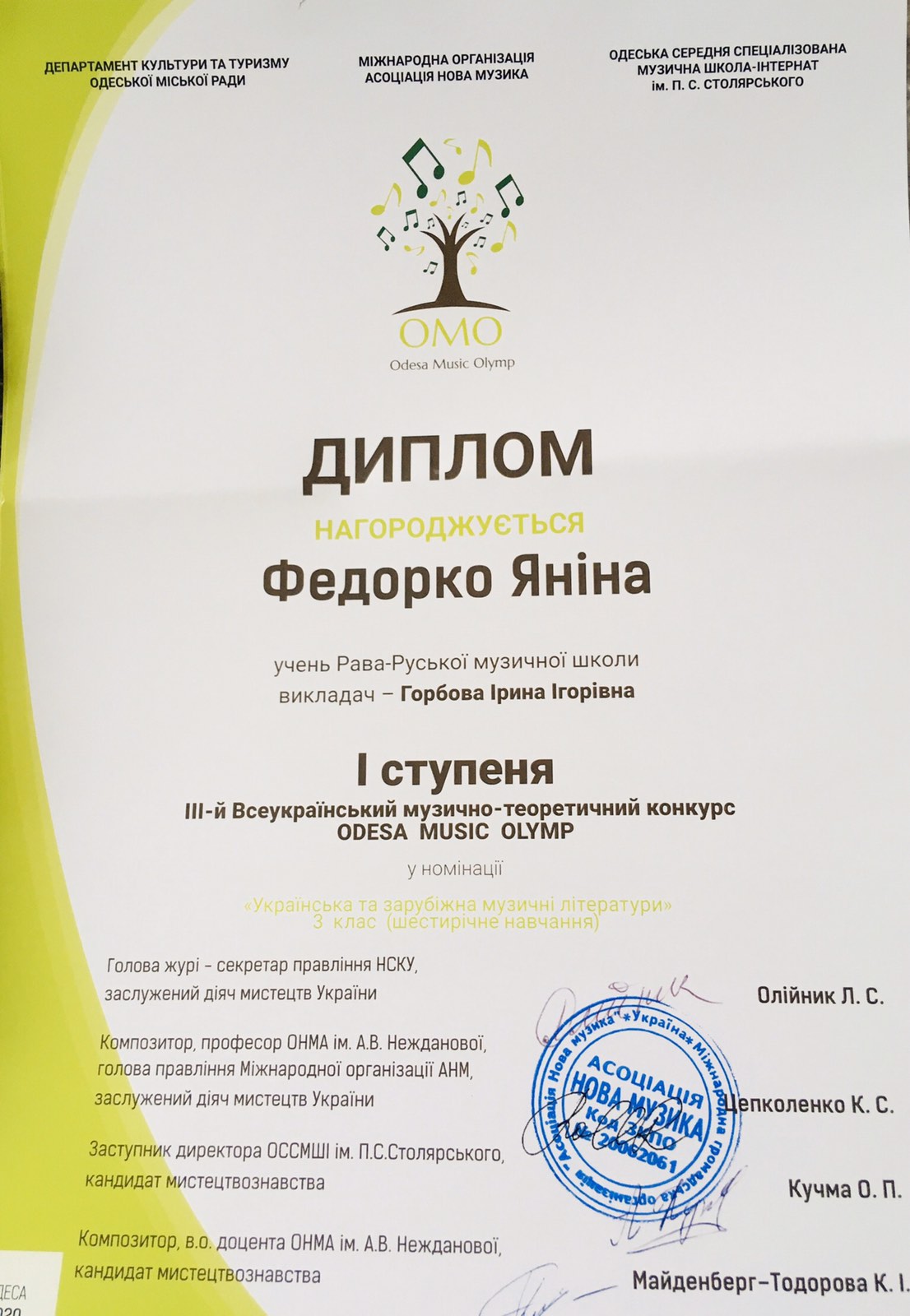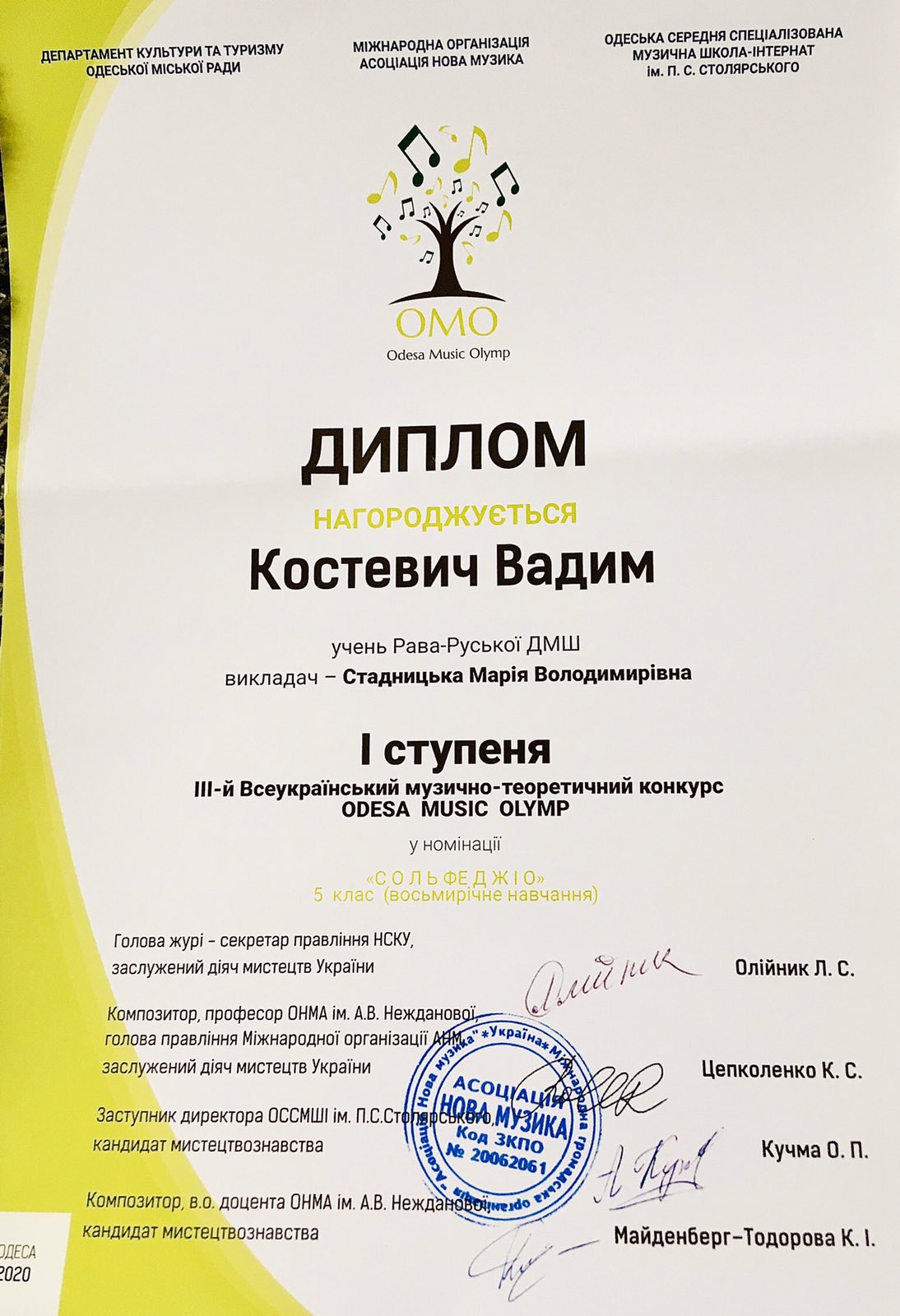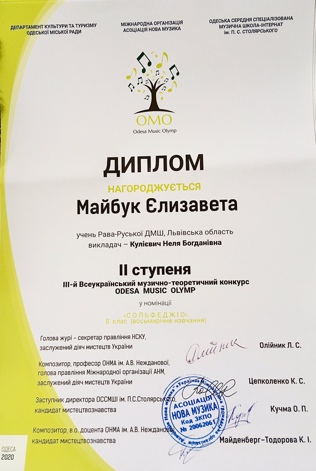 Нові перемоги подарували нашій школі талановиті, працьовиті та наполегливі учні разом зі своїми викладачами у ІІІ Всеукраїнському музично-теоретичному конкурсі « Odesa Musik Olimp 2020».