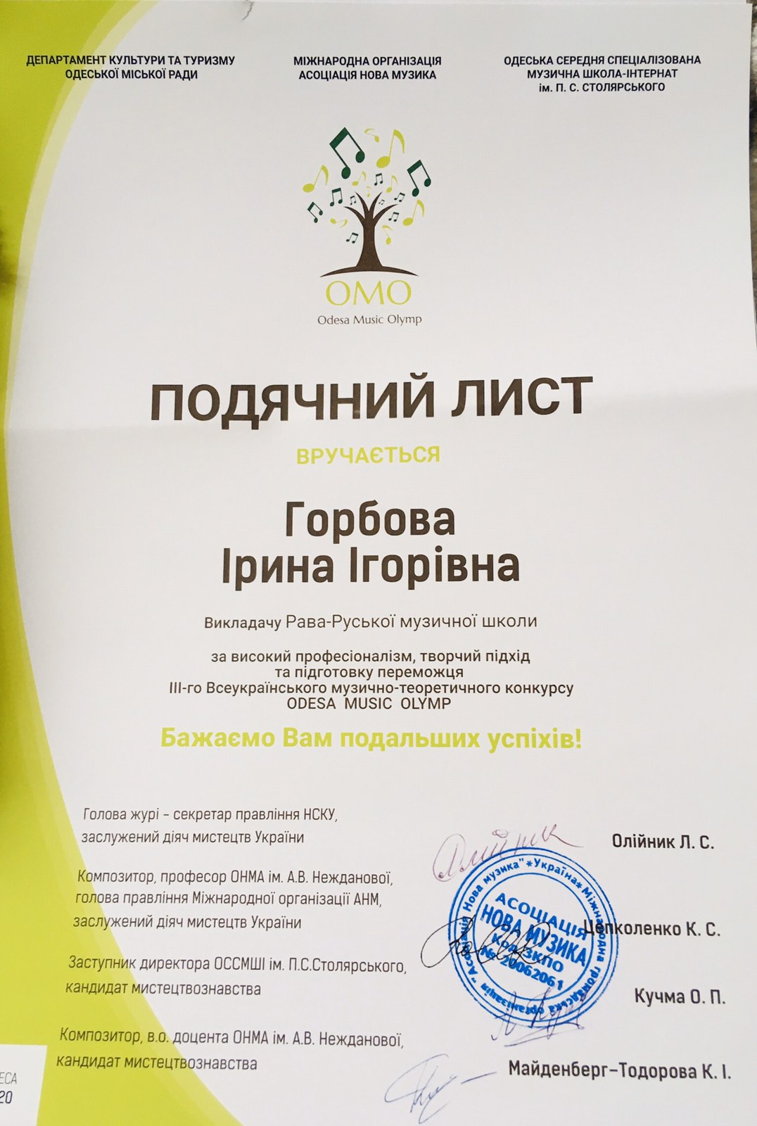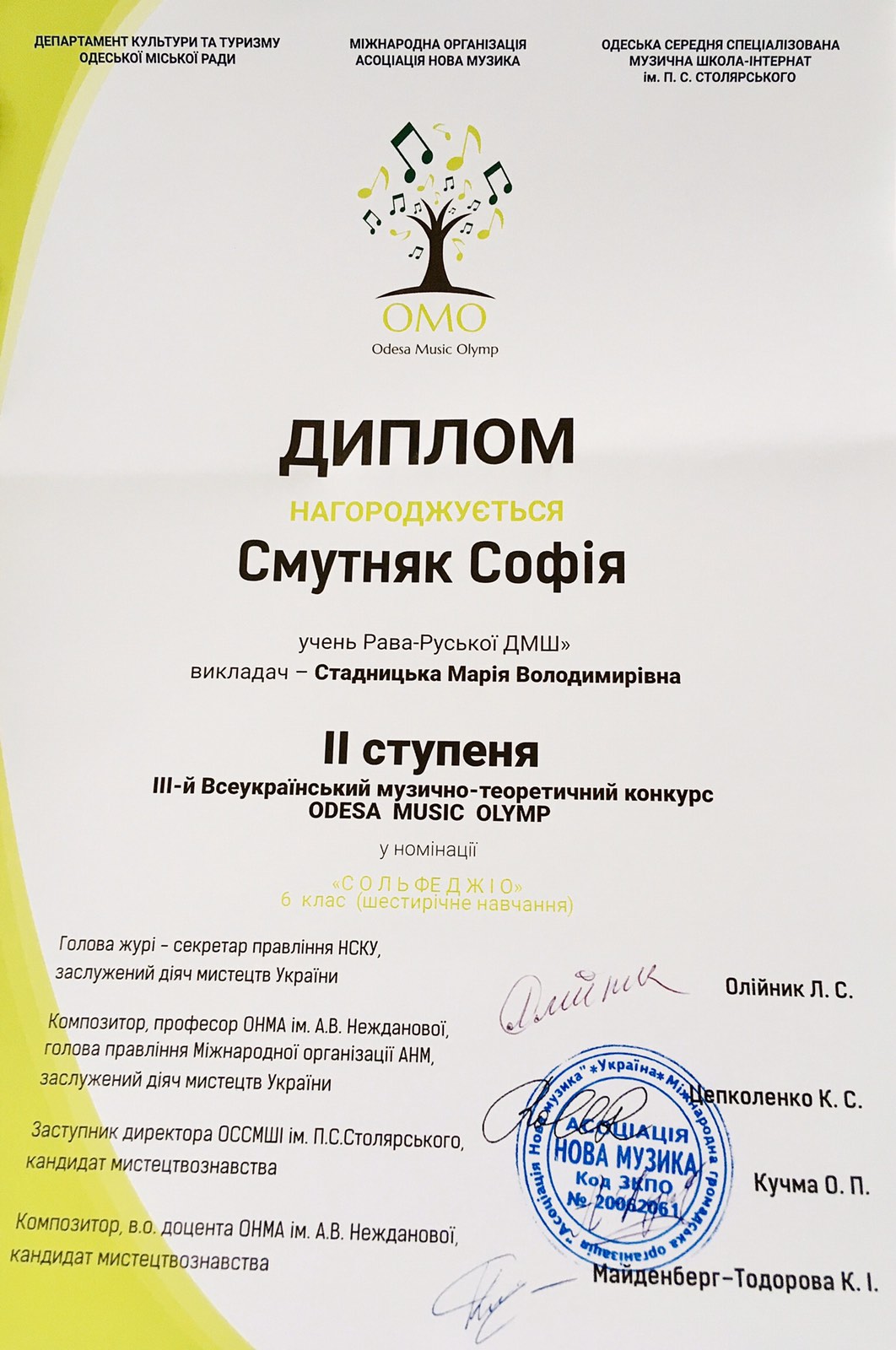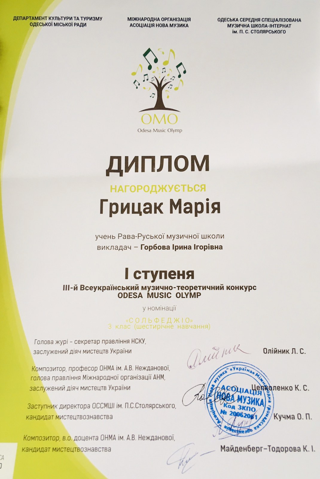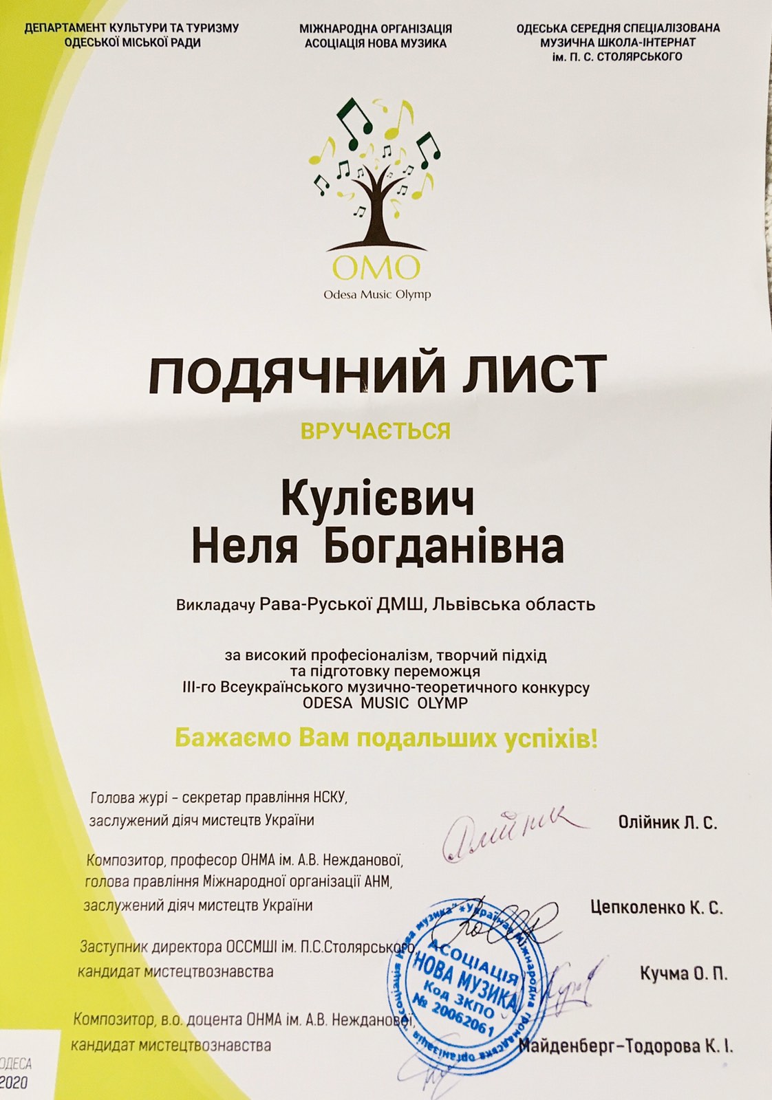Нові перемоги подарували нашій школі талановиті, працьовиті та наполегливі учні разом зі своїми викладачами у ІІІ Всеукраїнському музично-теоретичному конкурсі « Odesa Musik Olimp 2020».