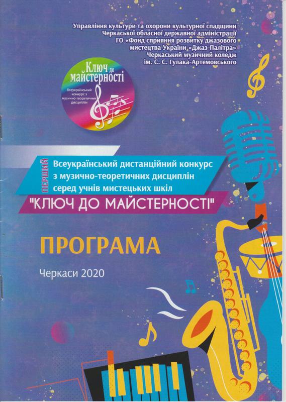 У грудні 2020р. відбувся І Всеукраїнський дистанційний конкурс з музично-теоретичних дисциплін - «Ключ до майстерності», організований та проведений Управлінням культурної спадщини Черкаської обласної держадміністрації, ГО «Фонд сприяння розвитку джазового мистецтва України», Черкаським музичним коледжем ім. С.С.Гулака-Артемовського.