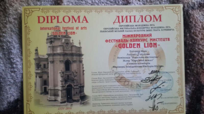 29-31 березня 2016 року в місті Львів палаці ім. Гната Хоткевича відбувся Міжнародний фестиваль-конкурс мистецтв "Golden Lion". 29 березня 2016 року – I конкурсний день; 30 березня 2016 року – II конкурсний день; 31 березня – екскурсії, автограф-сесія, гала-концерт; Для участі в міжнародному фестивалі-конкурсі мистецтв «Golden Lion» запрошуються обдаровані діти та молодь, а також творчі особистості, що вже відбулися, як артисти в категорії «Професіонали».