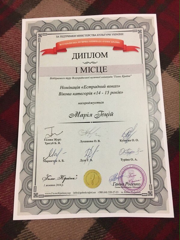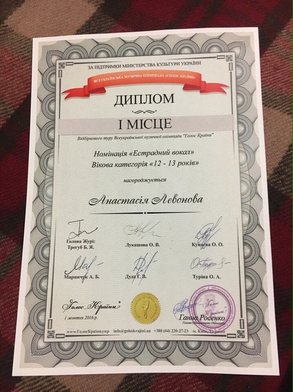1 жовтня 2016 року відбувся відбірковий тур Всеукраїнська музична олімпіада "Голос Країни". У конкурсі взяли участь 52 прекрасних виконавця не тільки з Києва. Підкорювати "Голос Країни" приїхали і учні Рава-Руської музичної школи. Всього у відбірковому турі взяли участь учні, студенти та педагоги з 22 різних навчальних закладів. Переможцями стали троє талановитих музикантів серед яких Діана Горбяк - номінація "Джазовий вокал", вікова категорія" 12 - 13 років (викладач Венедіктова В.Ю.). Наші випускниці також взяли високі місця: Гоцій Марія - 1 премія (поп), Левонова Анастасія -1 премія (поп), Горбяк Діана -1 премія (поп). Переможці відбіркового туру отримали сертифікати на участь у X Всеукраїнській музичній олімпіаді "Голос Країни", яка відбудеться 24 - 27 листопада 2016 р. в Концертному залі Київського університету ім. Бориса Грінченка.